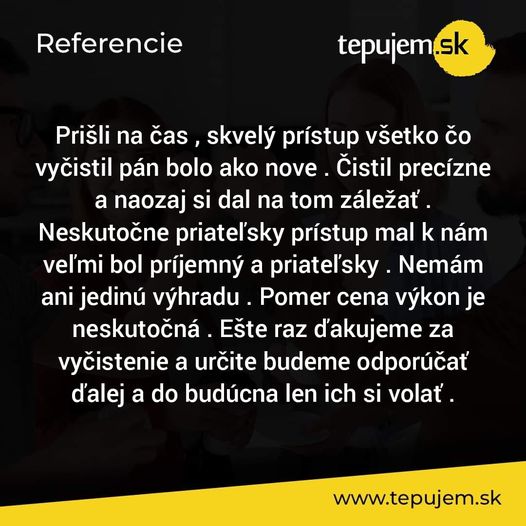 Sedačky, koberce, stoličky – vytepované úplne na jednotku a to pár dní pred vianočnými sviatkami. 100% práca, dochvíľnost . Využijem znovu.